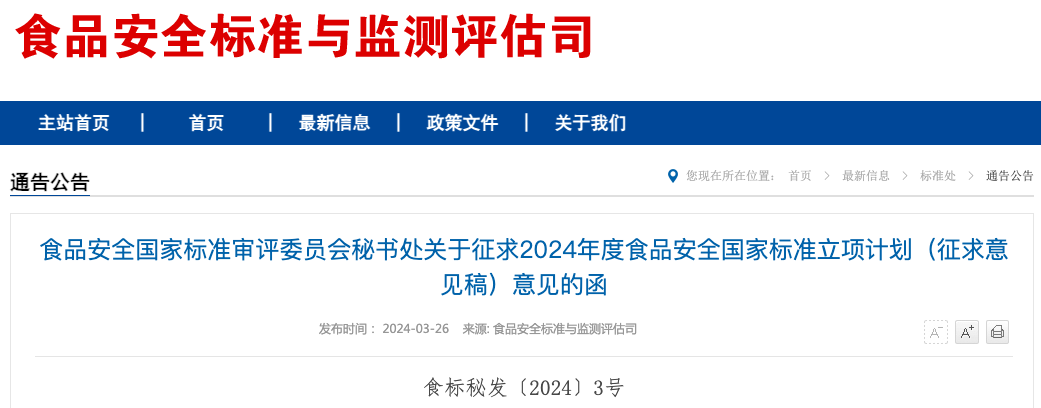 | 5 | 濕米制品 | 制定 | 廣東省公共衛(wèi)生研究院、海南省疾病預(yù)防控制中心、云南省衛(wèi)生健康綜合監(jiān)督中心、國家食品安全風(fēng)險評估中心、上海市質(zhì)量監(jiān)督檢驗技術(shù)研究院 |