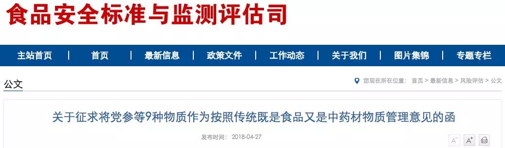 為進一步做好按照傳統(tǒng)既是食品又是中藥材物質(zhì)(以下簡稱食藥物質(zhì))管理工作,按照《食品安全法》規(guī)定,我委正會同有關(guān)部門和單位研究調(diào)整食藥物質(zhì)目錄,擬在前期工作基礎上,再增補一批物質(zhì)。本輪增補主要結(jié)合我國傳統(tǒng)飲食習慣,綜合考慮地方需求,同時參考相關(guān)國際管理經(jīng)驗,擬將黨參、肉蓯蓉、鐵皮石斛、西洋參、黃芪、靈芝、天麻、山茱萸、杜仲葉等9種物質(zhì)按照食藥物質(zhì)管理(附件)。