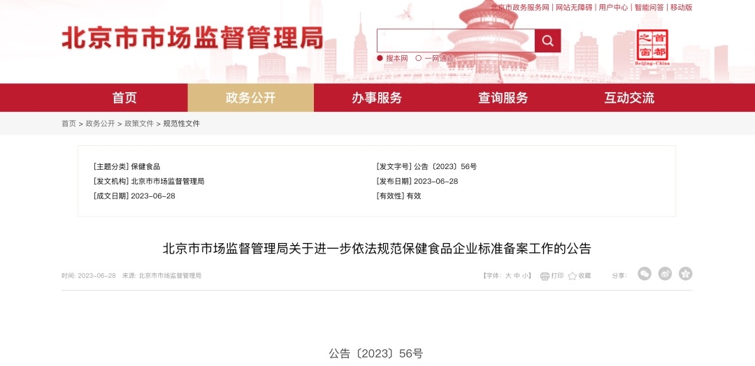為進(jìn)一步依法規(guī)范本市保健食品企業(yè)標(biāo)準(zhǔn)備案工作,依據(jù)《中華人民共和國食品安全法》《中華人民共和國食品安全法實(shí)施條例》等規(guī)定,現(xiàn)就北京市保健食品企業(yè)標(biāo)準(zhǔn)備案工作有關(guān)事項(xiàng)公告如下: