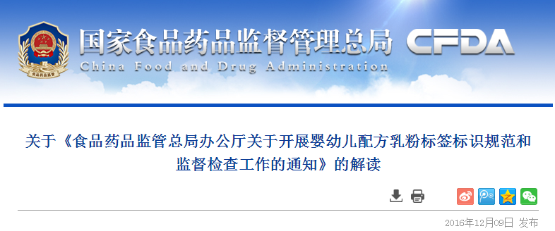 為進(jìn)一步加強嬰幼兒配方乳粉標(biāo)簽標(biāo)識監(jiān)督管理,規(guī)范嬰幼兒配方乳粉標(biāo)簽標(biāo)注和功能聲稱行為,保障嬰幼兒配方乳粉質(zhì)量安全,食品藥品監(jiān)管總局辦公廳印發(fā)了《食品藥品監(jiān)管總局辦公廳關(guān)于開展嬰幼兒配方乳粉標(biāo)簽標(biāo)識規(guī)范和監(jiān)督檢查工作的通知》(食藥監(jiān)辦食監(jiān)一〔2016〕168號,以下簡稱《通知》)。該《通知》于2016年12月7日開始實施。現(xiàn)就有關(guān)問題解讀如下: