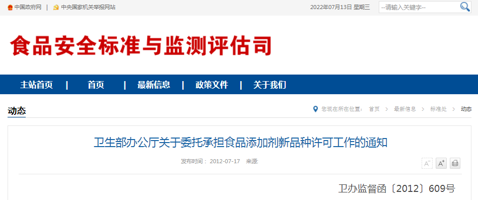 為做好食品添加劑新品種安全性審查和許可工作,根據《食品安全法》及其實施條例、中央編辦《關于印發(fā)〈國家食品安全風險評估中心組建方案〉的通知》(中央編辦發(fā)〔2011〕21號)規(guī)定,現決定委托你們承擔食品添加劑新品種許可的技術審查等工作。具體事宜通知如下: