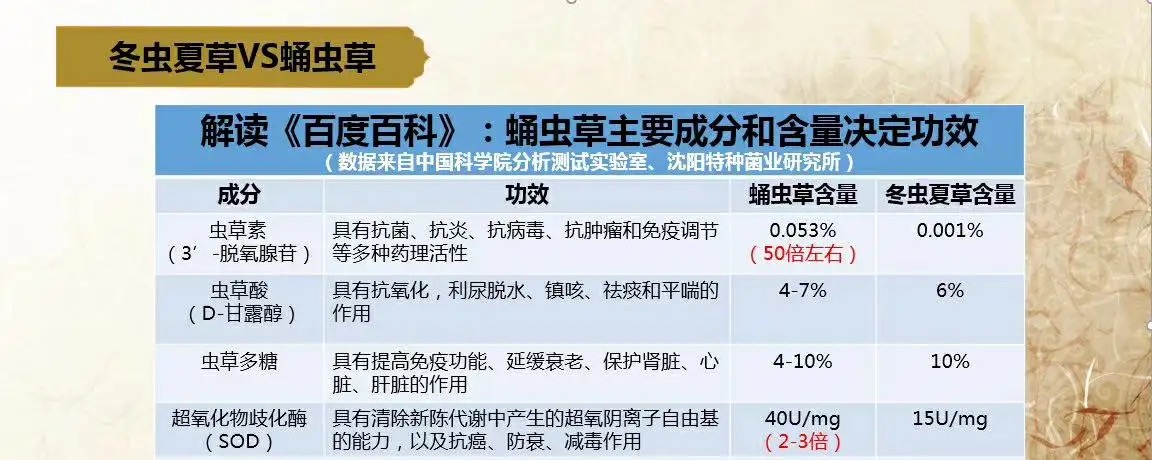在這種情況下,人們試圖探討用較好的人工栽培方法取代野生資源,去進行人工培育,目前,也取得了顯著的進展。那么,培育出來的蛹蟲草(北冬蟲夏草)相比野生的冬蟲夏草功效如何呢?