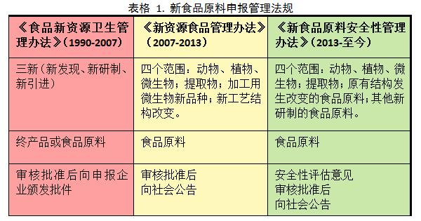 中國對于新食品原料的管理相比于歐美發(fā)達國家地區(qū)相對較晚,但是正在一步步地趨于成熟,總體而言有三個階段(表格 1)。