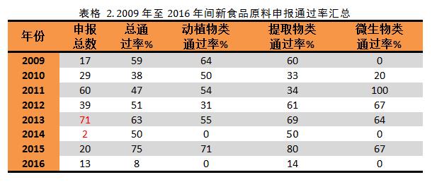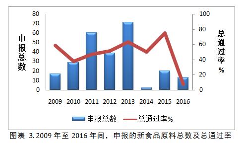 新食品原料申報總數和通過率